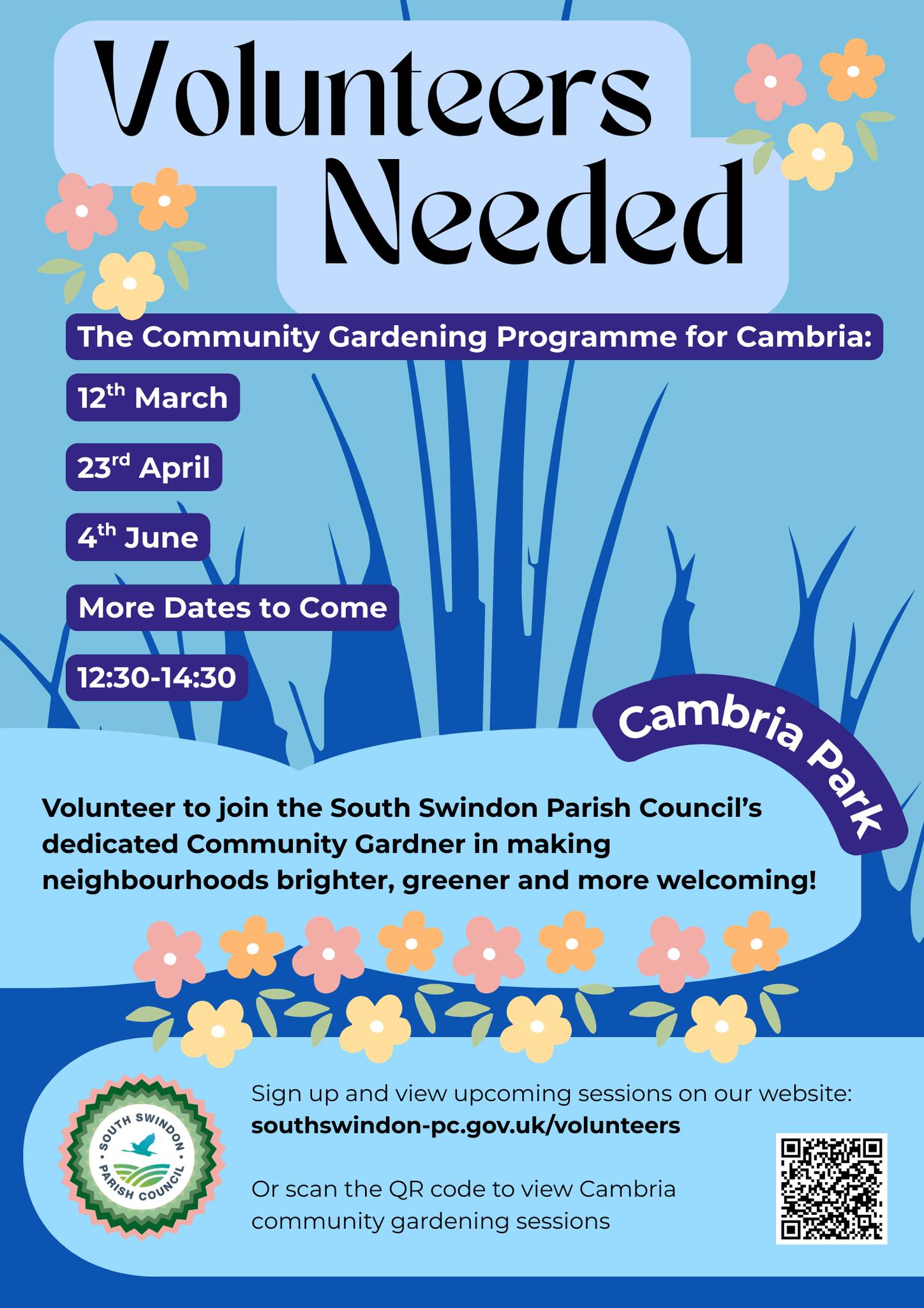 South Swindon Parish Council have employed a Community Development Officer to help find more volunteers for projects. Here is the programme up until the end of June: